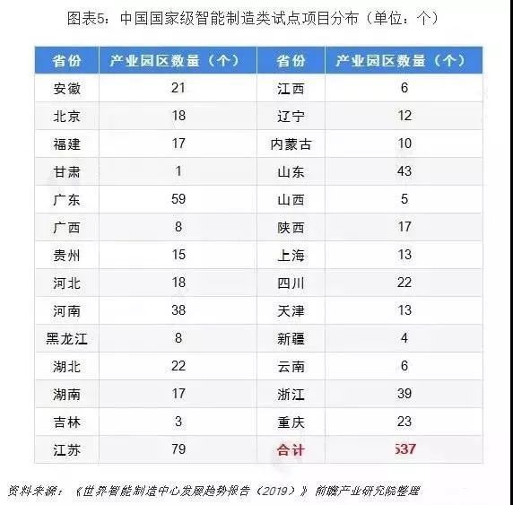 近年来,各地为了发展智能制造产业,在智能制造链条上诞生了大量的产业园区,这些园区孕育了一大批智能制造产业链企业,已经成为中国智能制造产业的重要承载地和孵化器。根据《世界智能制造中心发展趋势报告(2019)》显示,包括带有“智能制造”名称的所有产业园区,目前中国总共有537个,分布在全国27个省市。