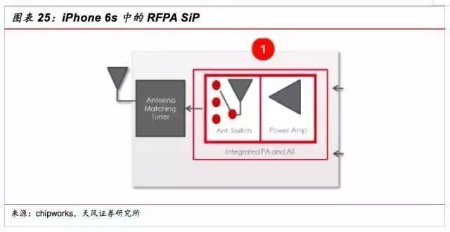 RFPA模块。手机中的RFPA是最常用SiP形式的。iPhone 6S也同样不例外,在iPhone 6S中,有多颗RFPA芯片,都是采用了SiP。